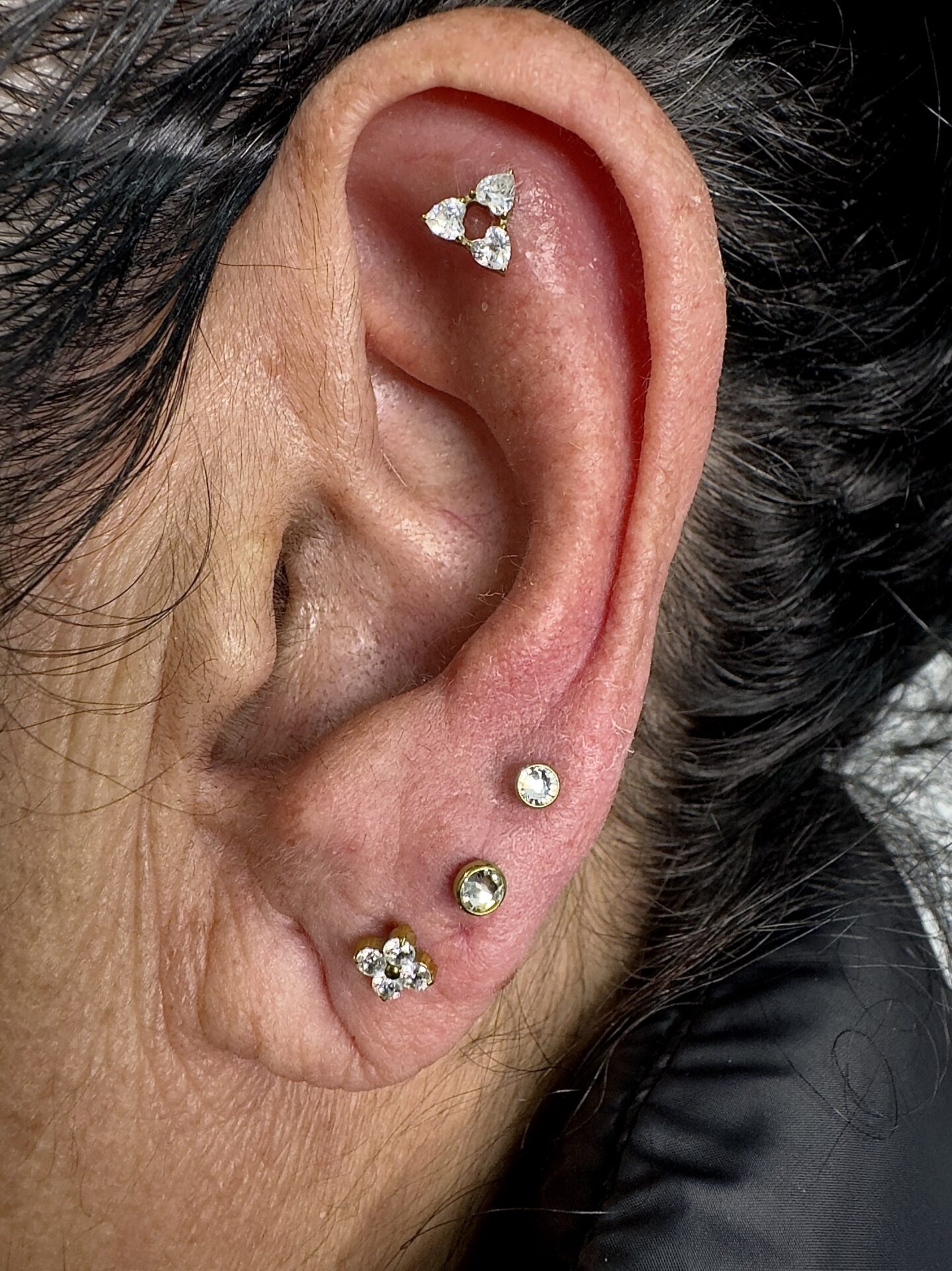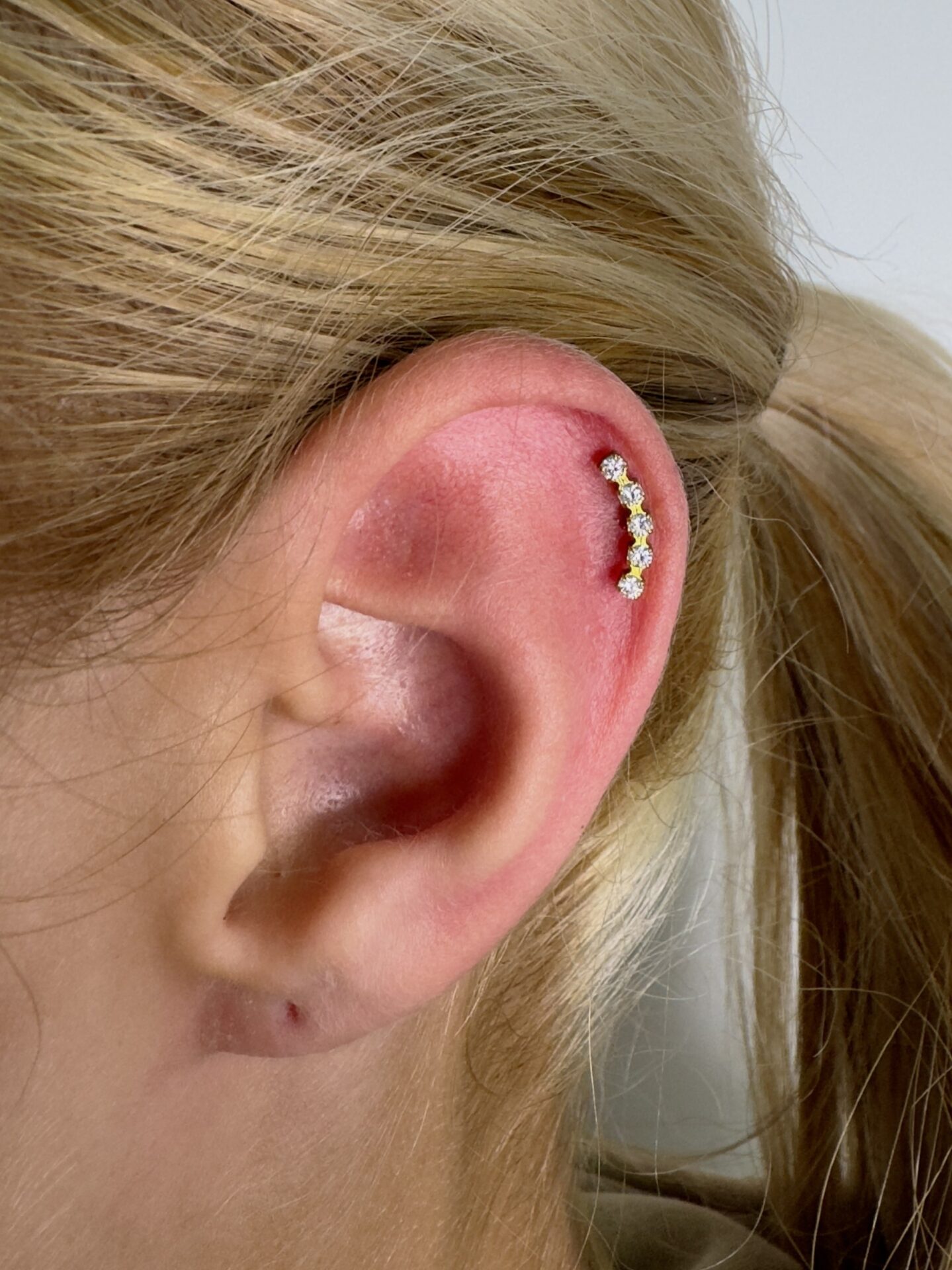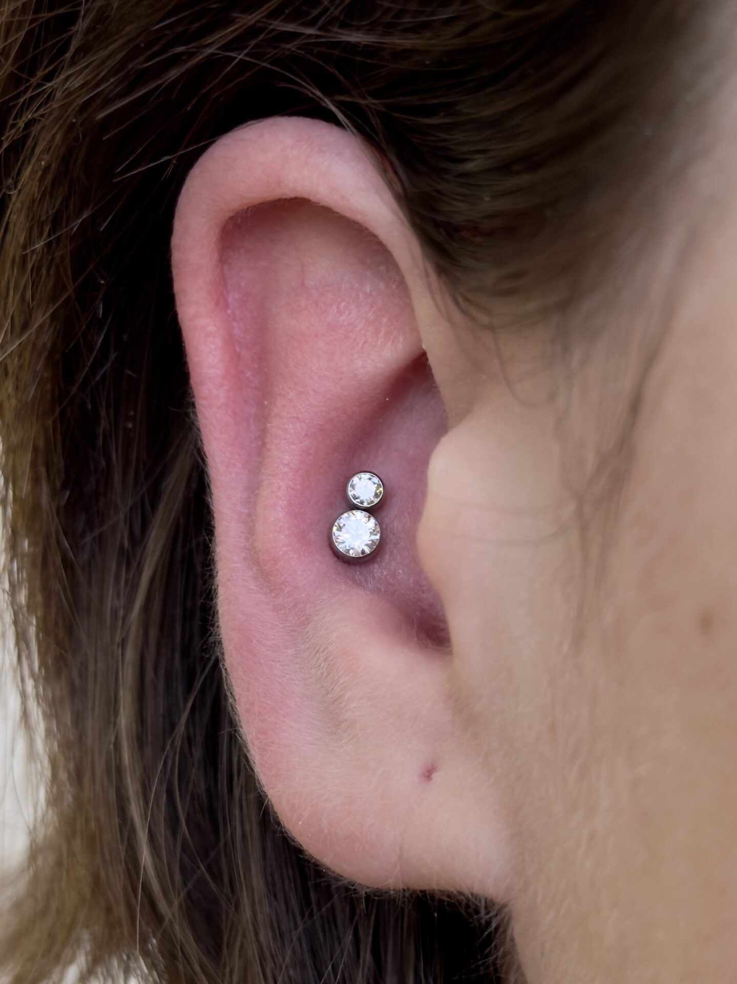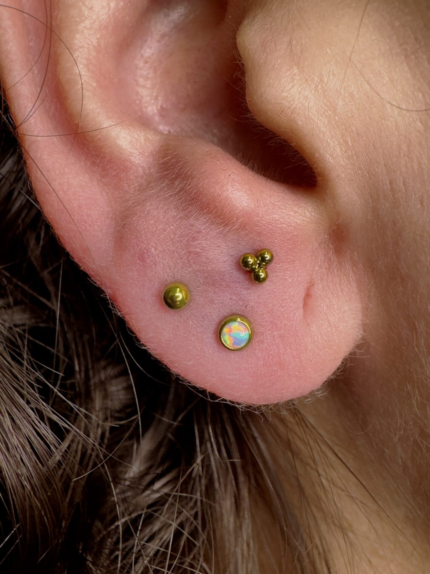 Trabajamos exclusivamente con joyas de titanio de grado implante ASTM F136, el único material verdaderamente biocompatible, para garantizar una cicatrización óptima y minimizar cualquier riesgo. Para nosotras, la calidad del material es tan importante como la técnica.